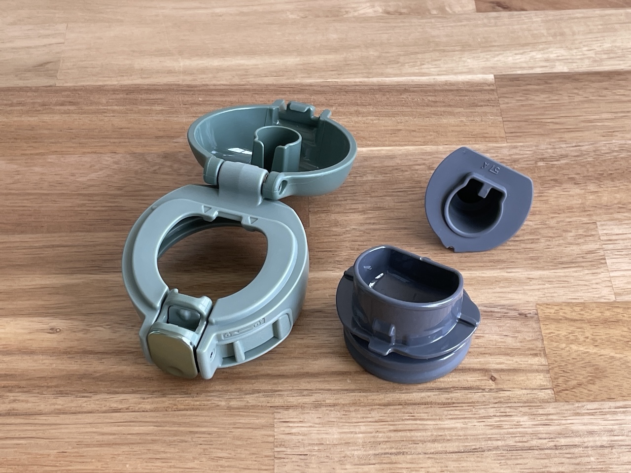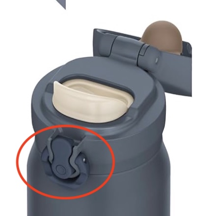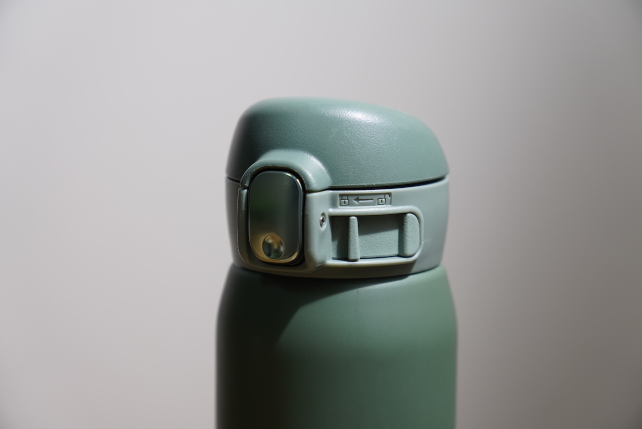 僕はロックを一切しないタイプなので、上の画像のように常にワンタッチボタンの下にプラスチック部分が来るのは少し邪魔に感じました。(ロックをしてないせいで水が漏れるということは3年使って一度もありませんでした)